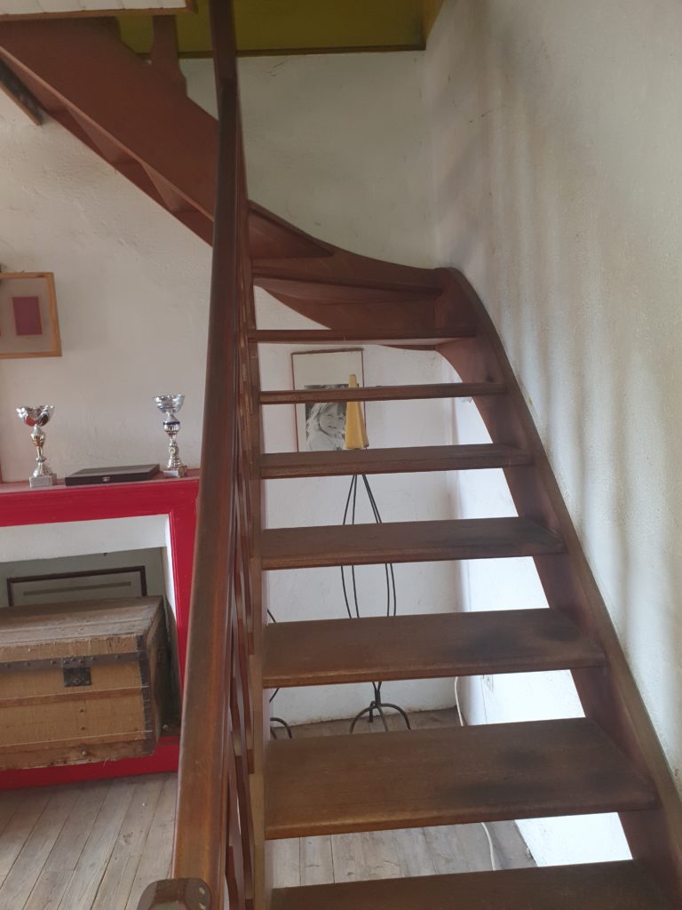 Le duplex avec sa belle hauteur sous plafond offre un volume très confortable. L’escalier menant à l’étage est en bois, de bonne facture, donne un réel sentiment de sécurité pour tous.