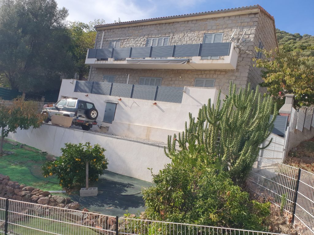 On accède au R+1 par un magnifique escalier extérieur en granit rouge qui donne accès à une belle terrasse plein sud de 16m² avec vue directe sur le Capu d’Ortu.